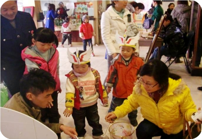 小朋友和家長在領取養(yǎng)樂多呢