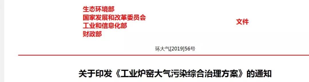 《工業爐窯大氣污染綜合治理方案》環大氣[2019]56號
